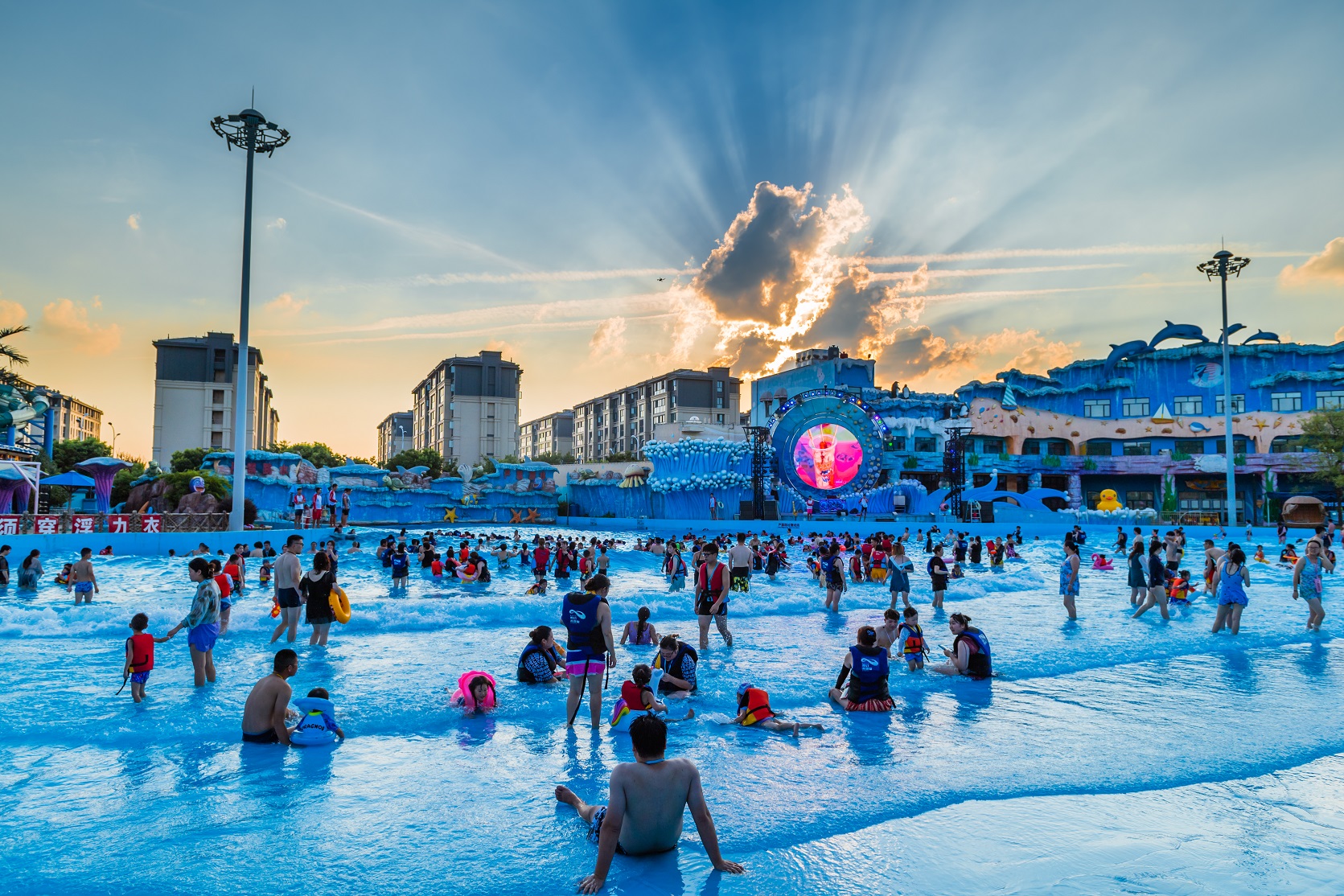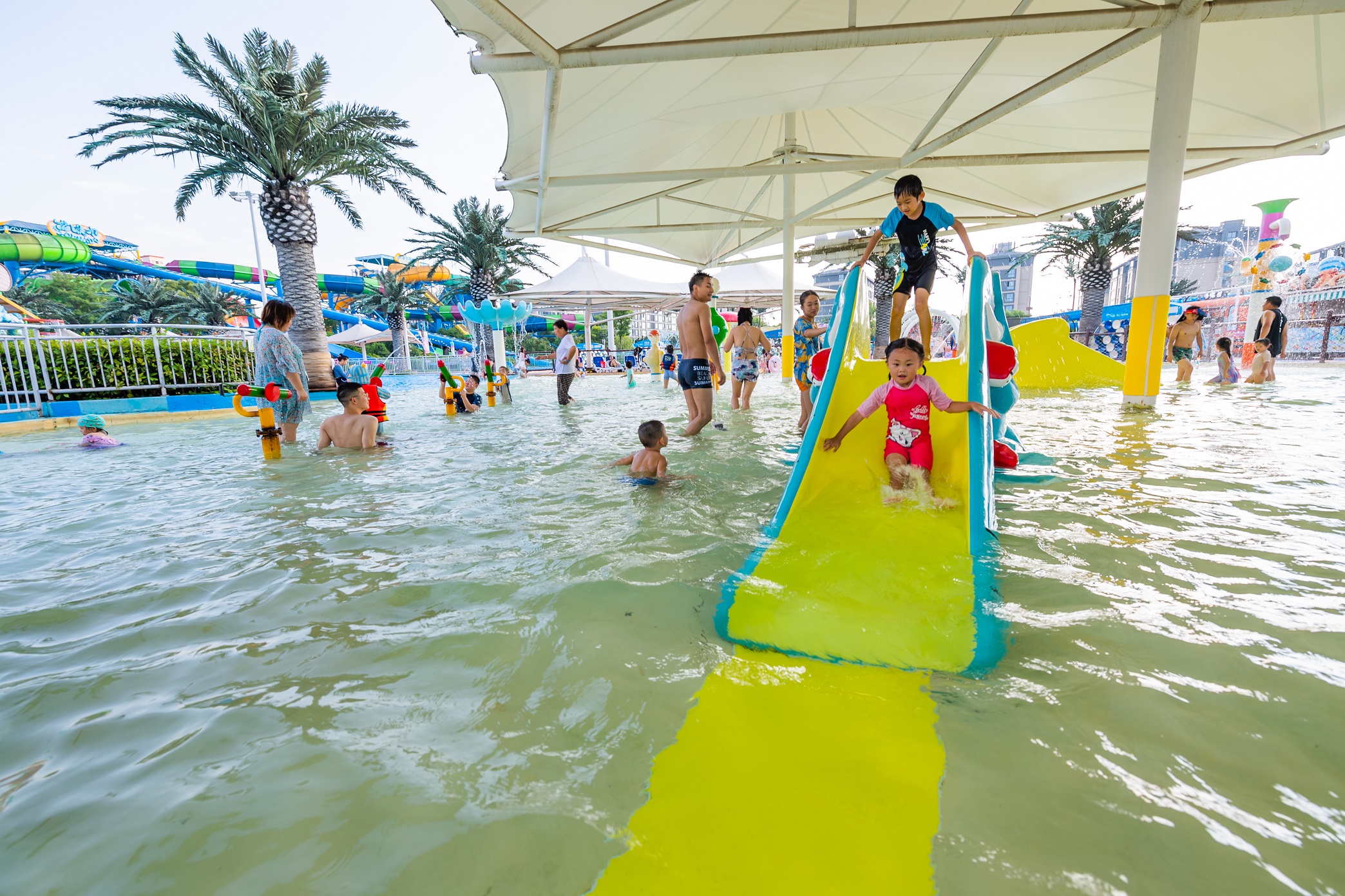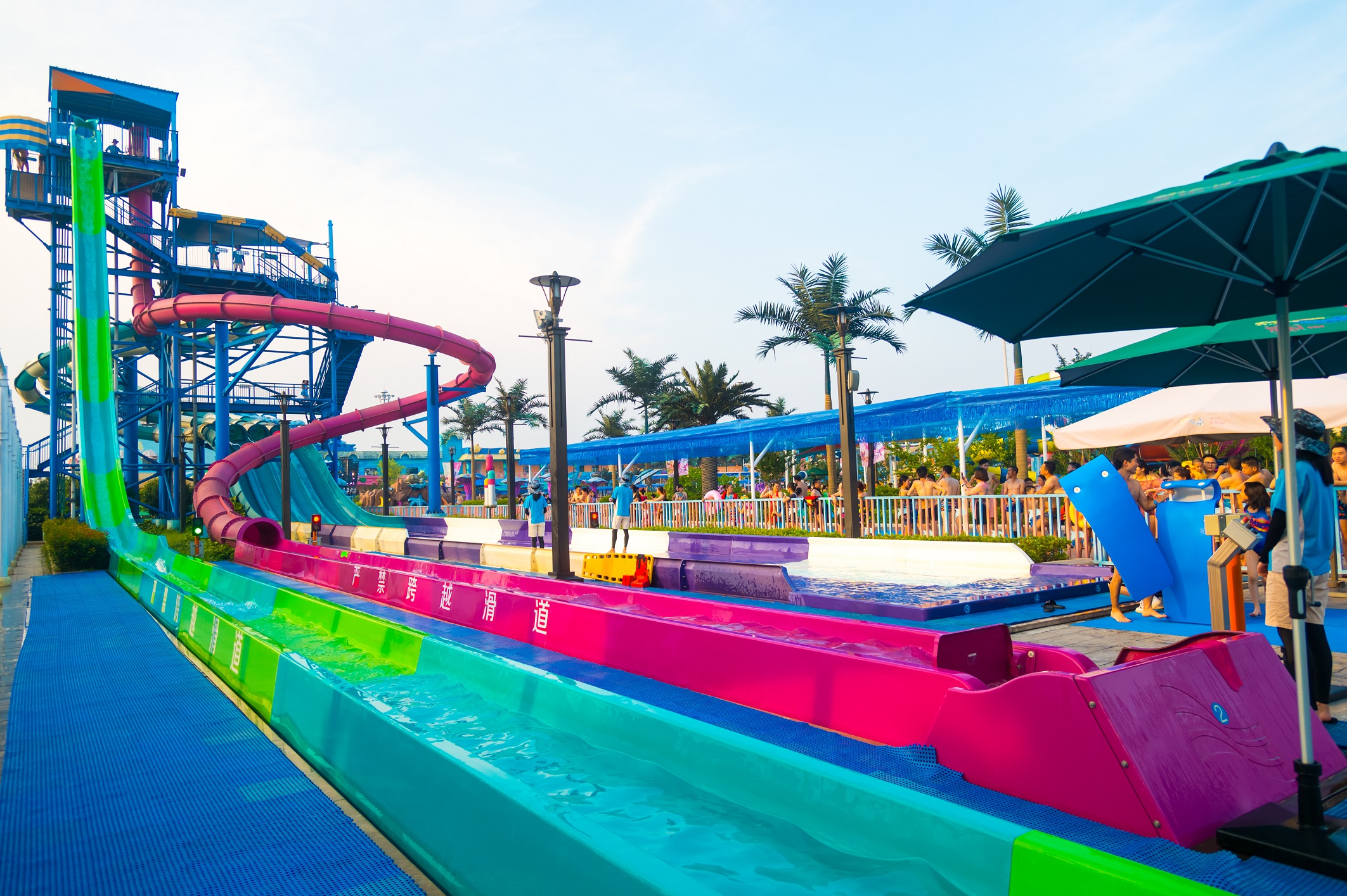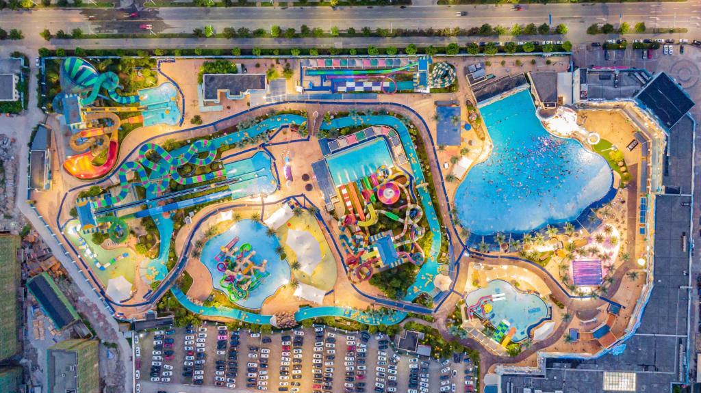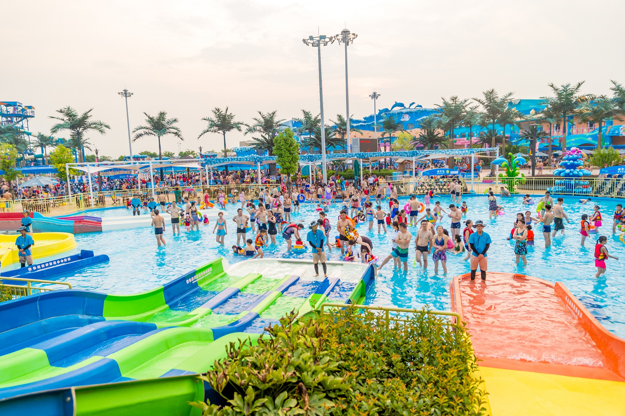 绍兴梦幻水世界,位于绍兴市越城区镜湖核心区,占地150亩,斥资5亿打造。水世界倡导亲水而嬉,设计充分考虑游客的体验感与互动性,营造极富文化主题与游乐互动的环境,完美呈现玩水新乐趣。水世界设计风格以海洋元素为基础,绚丽的色彩、细腻的做工、精良的材料,打造游客心中梦幻般的海洋王国。由加拿大公司专门为水世界设计生产八大顶级游乐设备,近四十条滑道花样组合,所带来的激情体验与亲密互动,全方位释放亲水、嬉水、乐水的无限魅力和夏日清凉。绍兴梦幻水世界已成为绍兴旅游业的标杆,夏季玩水的圣地。
