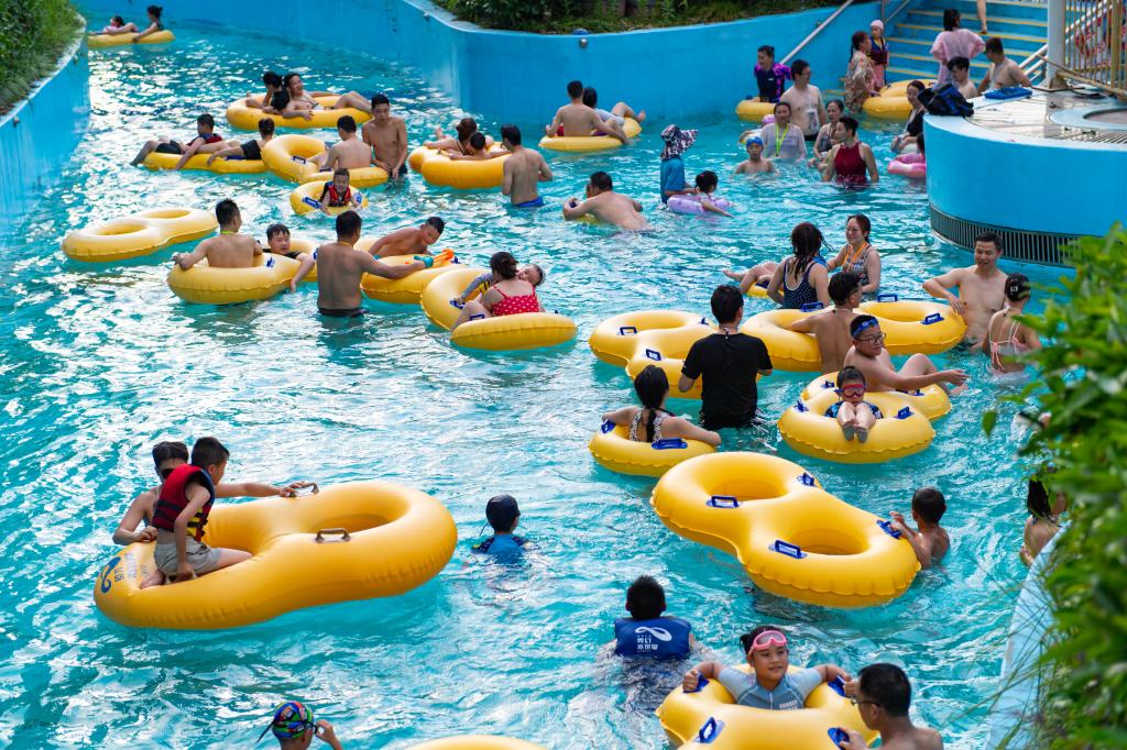 漂流河,全长约400米,要求身高1.1米以上,不习水性者需穿着浮力衣,游客可悠闲乘坐浮筏体验零重力随波荡漾。
