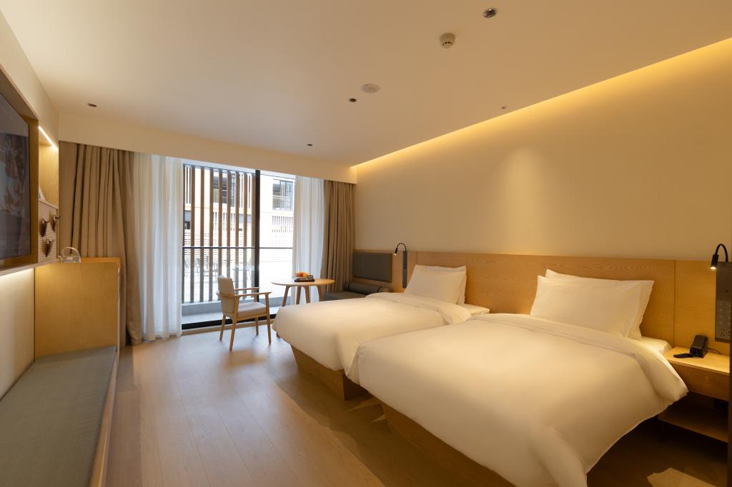 酒店拥有74间风格各异的客房,包括安善景观大床房(露台)、安善景观大床房(阳台)、曲水舒适大床房、双辉景观双床房、双栖舒适双床房等。