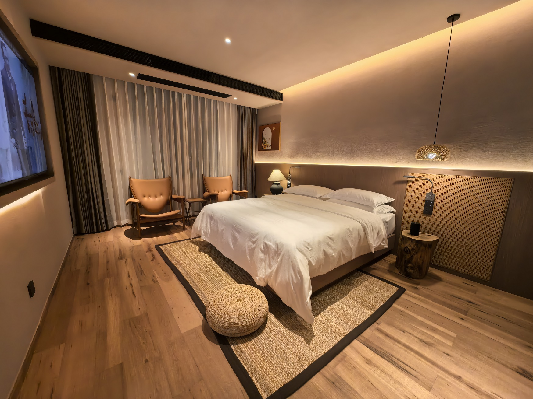 酒店由21栋民居整体设计装修而成,客房涵盖标间、大床房、亲子房、主题房等