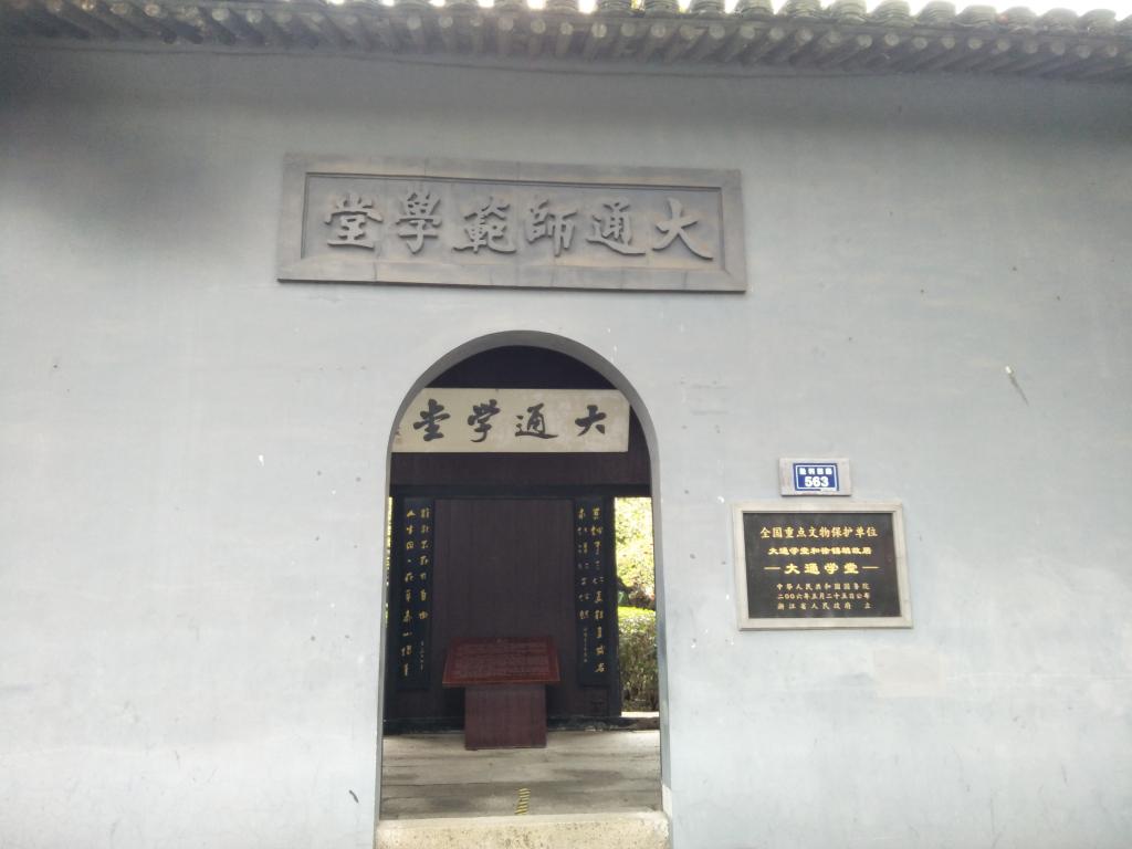 作为辛亥革命在浙江的重要史迹之一,大通学堂为 1905年9月由徐锡麟、陶成章、龚宝铨等人为培养训练革命人士而创办的一所军事学校,是中国近代最早设立体操专修科的学校,也是徐锡麟、秋瑾同举皖浙义旗的指挥中心。