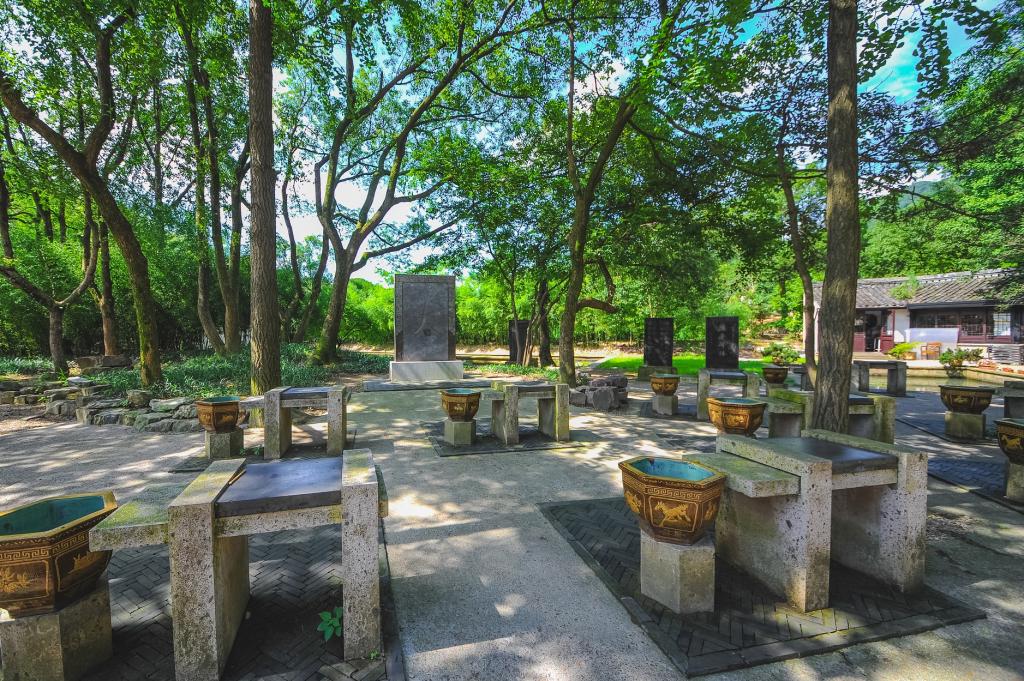 曲水流觞,是中国古代流传的一种游戏。农历的三月人们举行祓禊仪式之后,大家坐在河渠两旁,在上流放置酒杯,酒杯顺流而下,停在谁的面前,谁就取杯饮酒。这种游戏非常古老,逸诗有云:“羽觞随波泛”。王羲之就是在东晋永和九年的三月初三在兰亭举行曲水流觞活动时,乘着酒兴,一气呵成写就了天下第一行书《兰亭集序》。1600多年后的今天,您可以在兰亭,体验到古人的风雅,以亲切随和的方式,走近历史,融入文化,最终爱上生活。